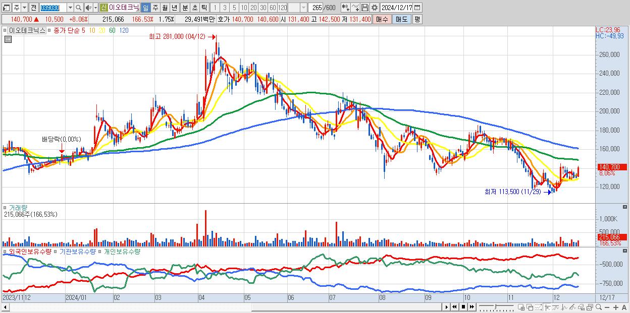 - 이오테크닉스 (140,700원 ▲ 8.06% , 시총: 17,334억, 외국인 순매수 거래금:20억)