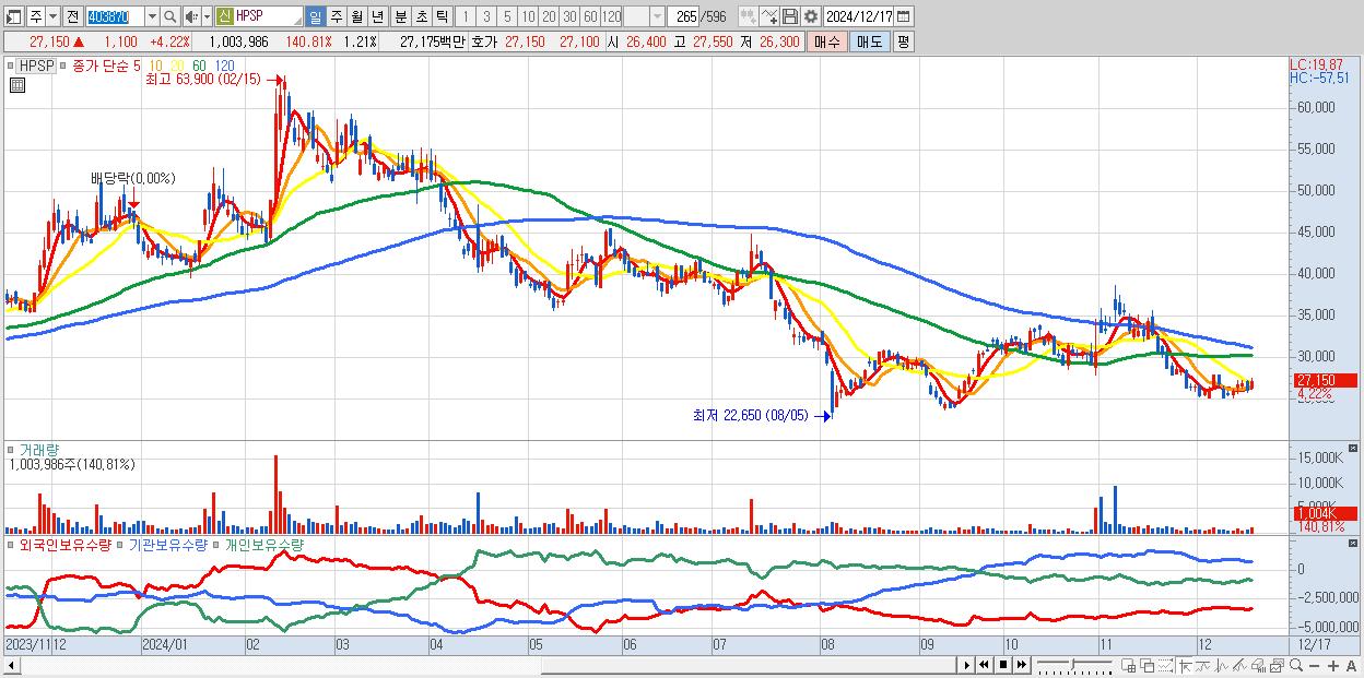 - HPSP (27,150원 ▲ 4.22% , 시총: 22,534억, 외국인 순매수 거래금:17억)