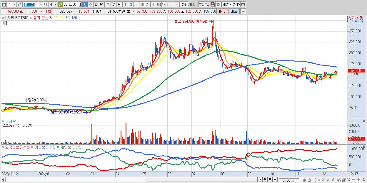 2.LS ELECTRIC 159,300원 ▲ 1.14% (KOSPI, 010120)