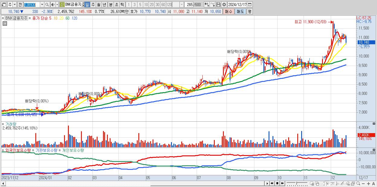 - BNK금융지주 (10,740원 ▼ -2.98% , 시총: 34,415억, 외국인 순매수 거래금:99억)