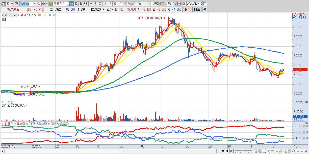 - 제룡전기 (45,700원 ▲ 0.77% , 시총: 7,341억, 외국인 순매수 거래금:16억)