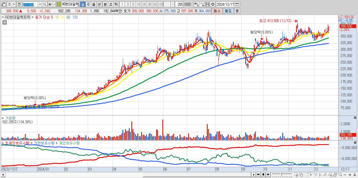 - HD현대일렉트릭 (388,500원 ▲ 2.24% , 시총: 140,043억, 외국인 순매수 거래금:87억)
