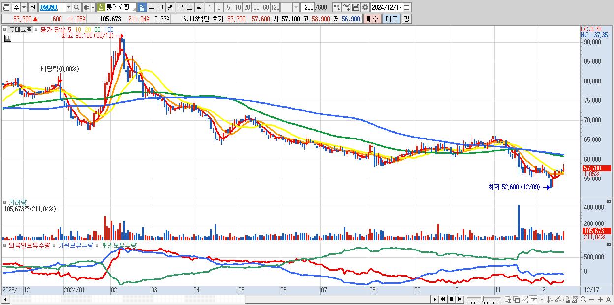 30.롯데쇼핑 57,700원 ▲ 1.05% (KOSPI, 023530)