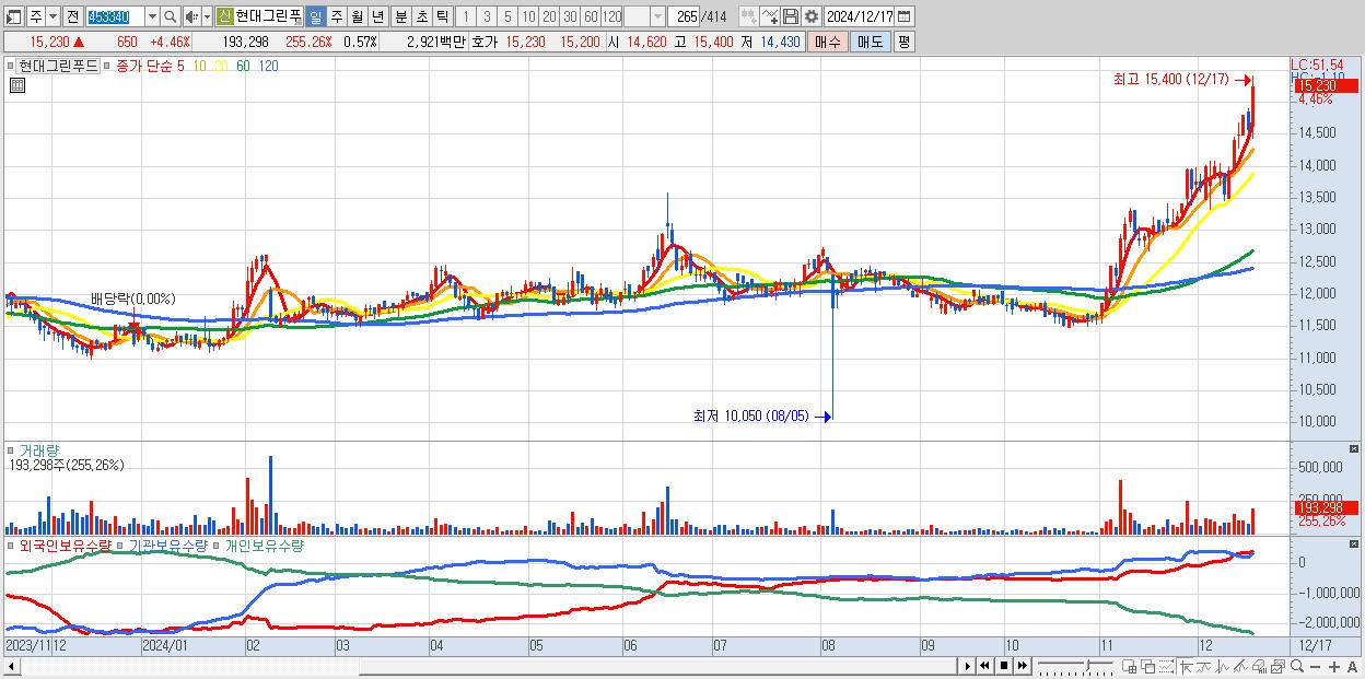 현대그린푸드 15,230원 ▲ 4.46% (KOSPI, 453340)