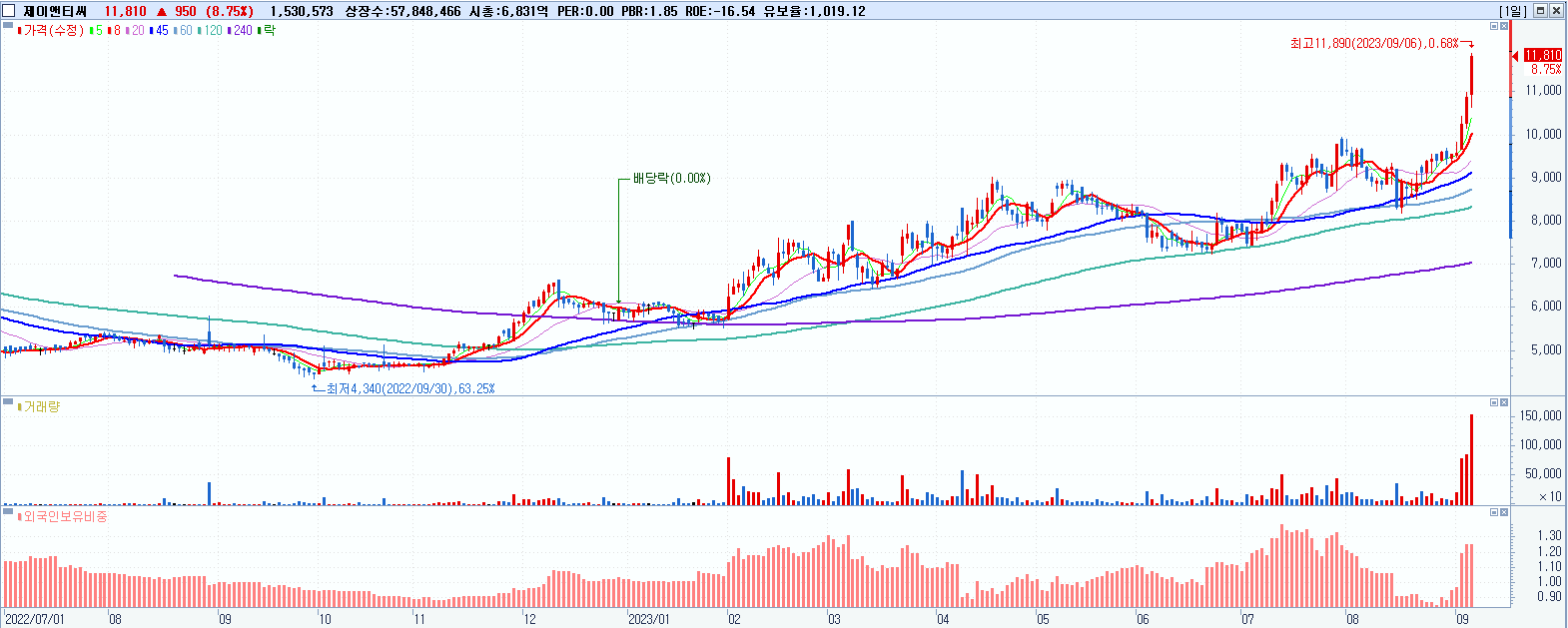 시총: 1,157억 거래량: 4,417,506 거래대금:427억
