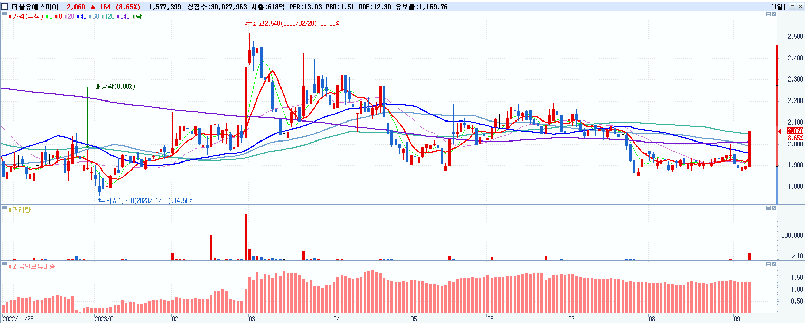 - 더코디 (8,670원 ▲ 8.65% , 시총: 412억, 거래량: 281,373, 거래대금:24억)