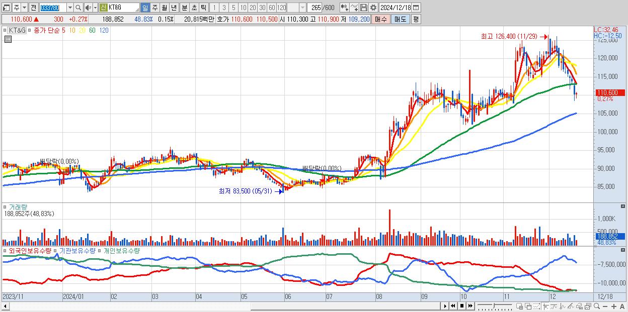 29.KT&G 110,600원 ▲ 0.27% (KOSPI, 033780)
