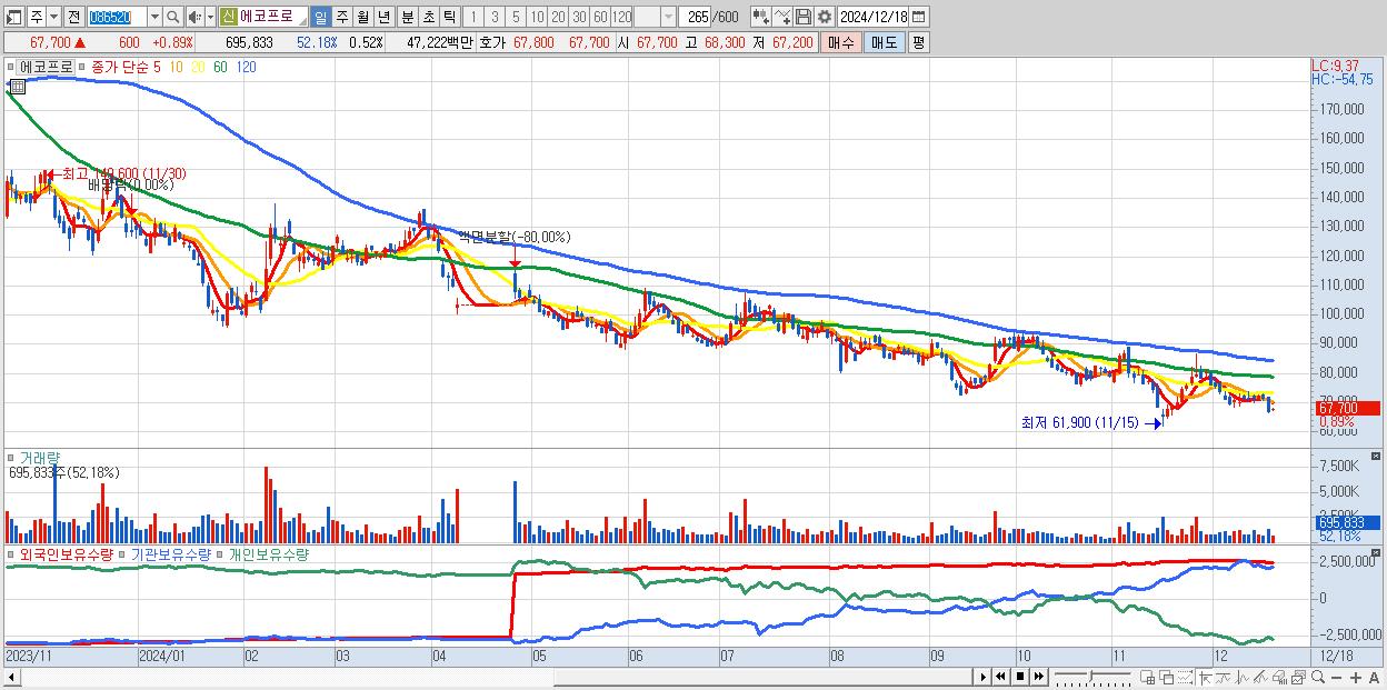 - 에코프로 (67,700원 ▲ 0.89% , 시총: 90,135억, 외국인 순매수 거래금:62억)