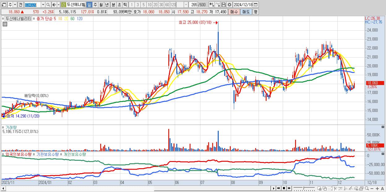 - 두산에너빌리티 (18,060원 ▲ 3.26% , 시총: 115,685억, 외국인 순매수 거래금:119억)