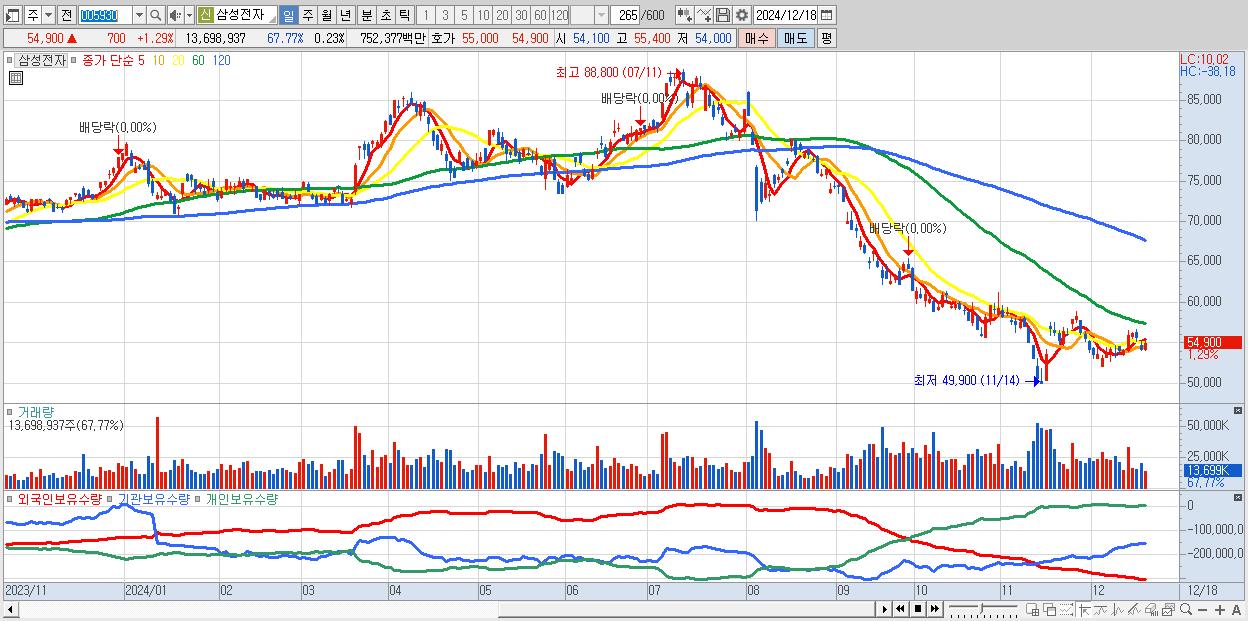 - 삼성전자 (54,900원 ▲ 1.29% , 시총: 3,277,411억, 외국인 순매수 거래금:412억)
