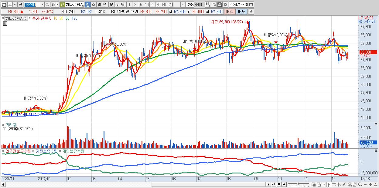 30.하나금융지주 59,800원 ▲ 2.57% (KOSPI, 086790)