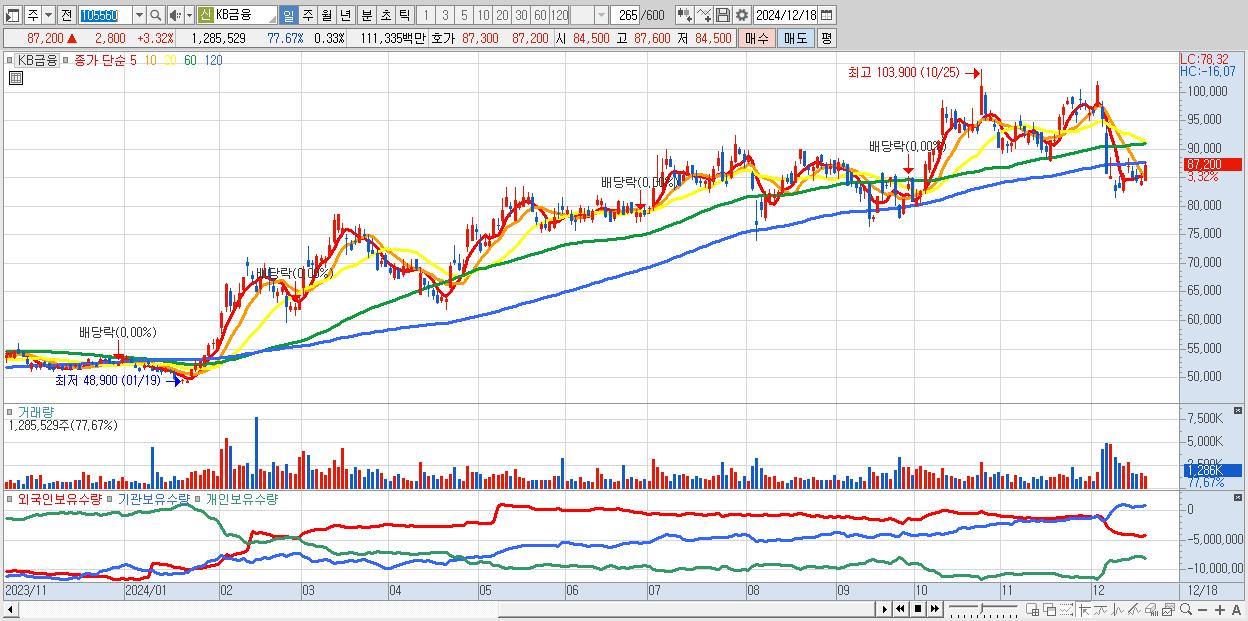 - KB금융 (87,200원 ▲ 3.32% , 시총: 343,157억, 외국인 순매수 거래금:193억)