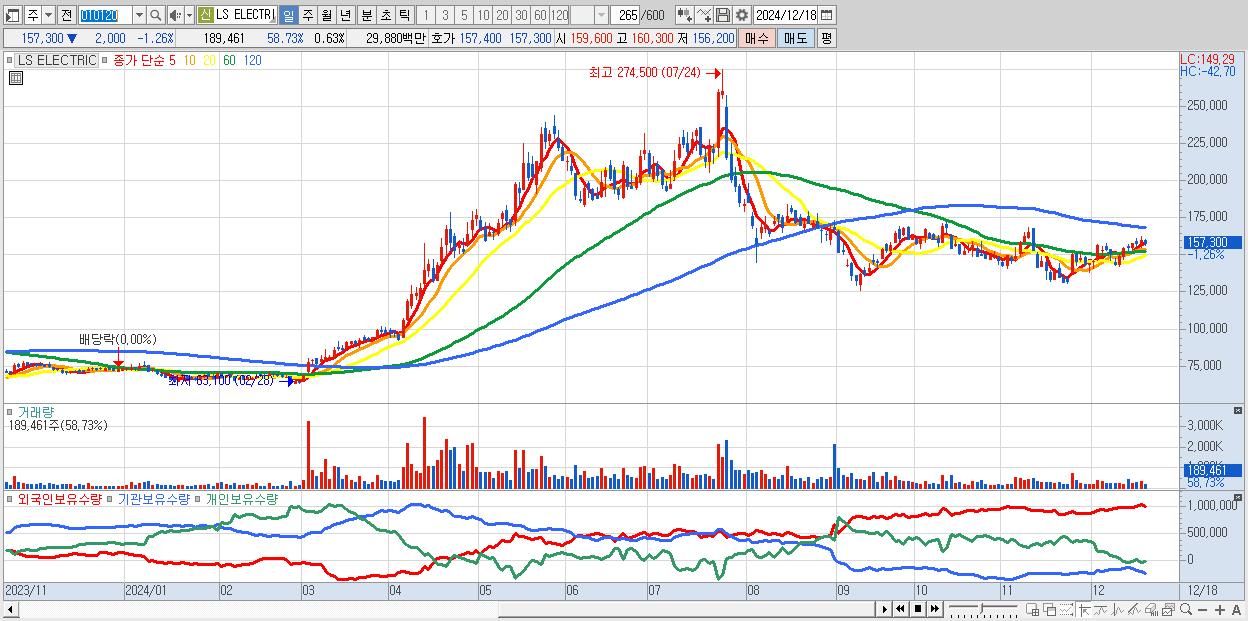 - LS ELECTRIC (157,300원 ▼ -1.26% , 시총: 47,190억, 외국인 순매수 거래금:46억)