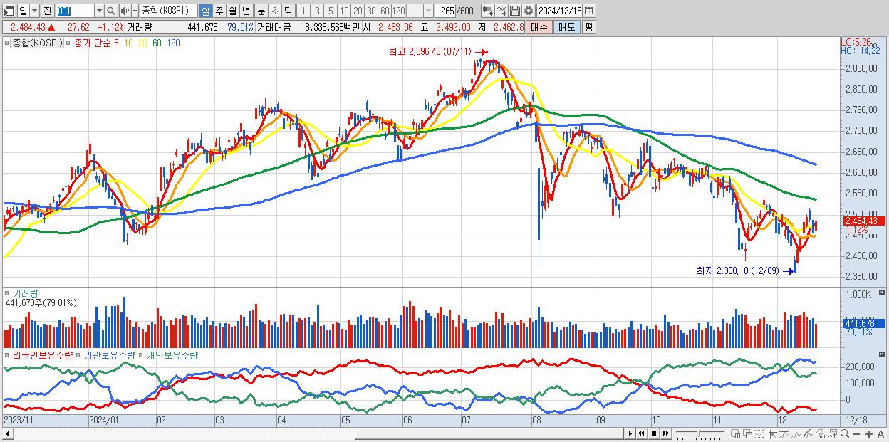 | 12/12 | 2,482.12 | ▲1.62% | -2,520억 | -227억 | 1,563억 | 1,183억 |