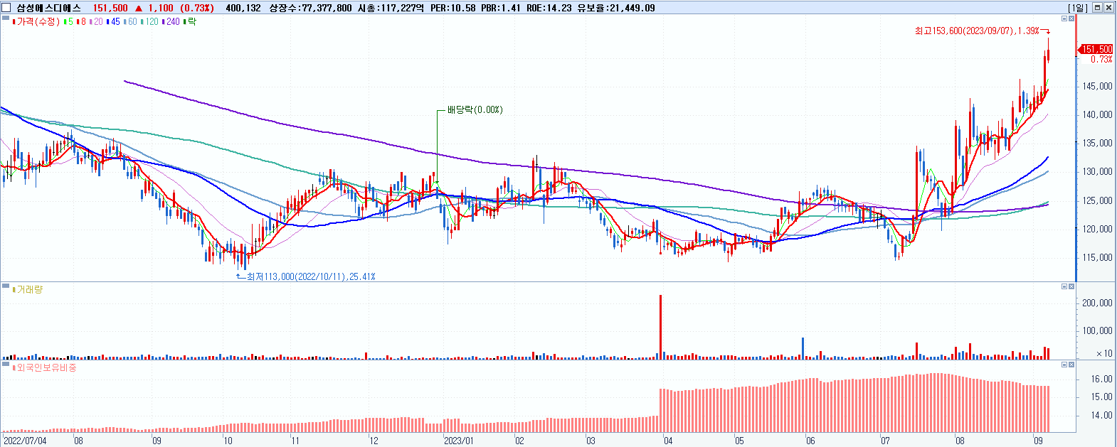 삼성에스디에스 151,500원 ▲ 0.73% (KOSPI, 018260)