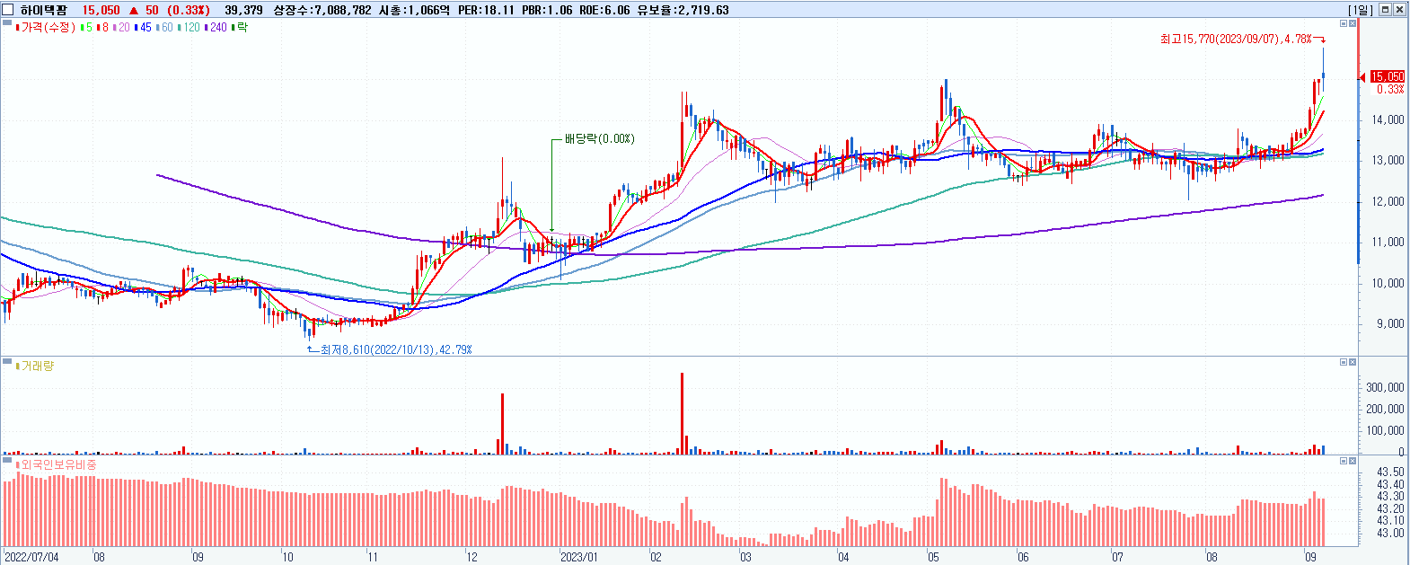 하이텍팜 15,050원 ▲ 0.33% (KOSDAQ, 106190)