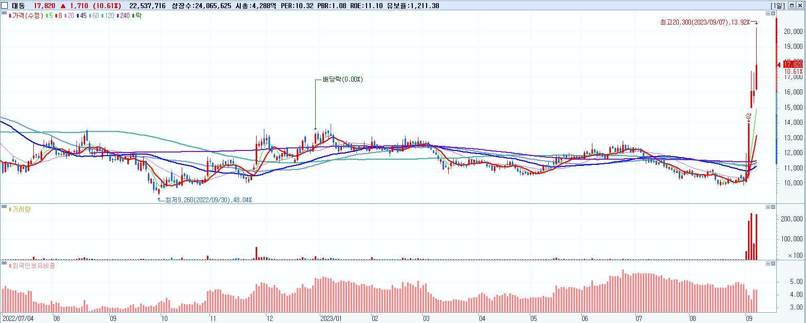 시총: 2,528억 거래량: 6,099,030 거래대금:1,321억