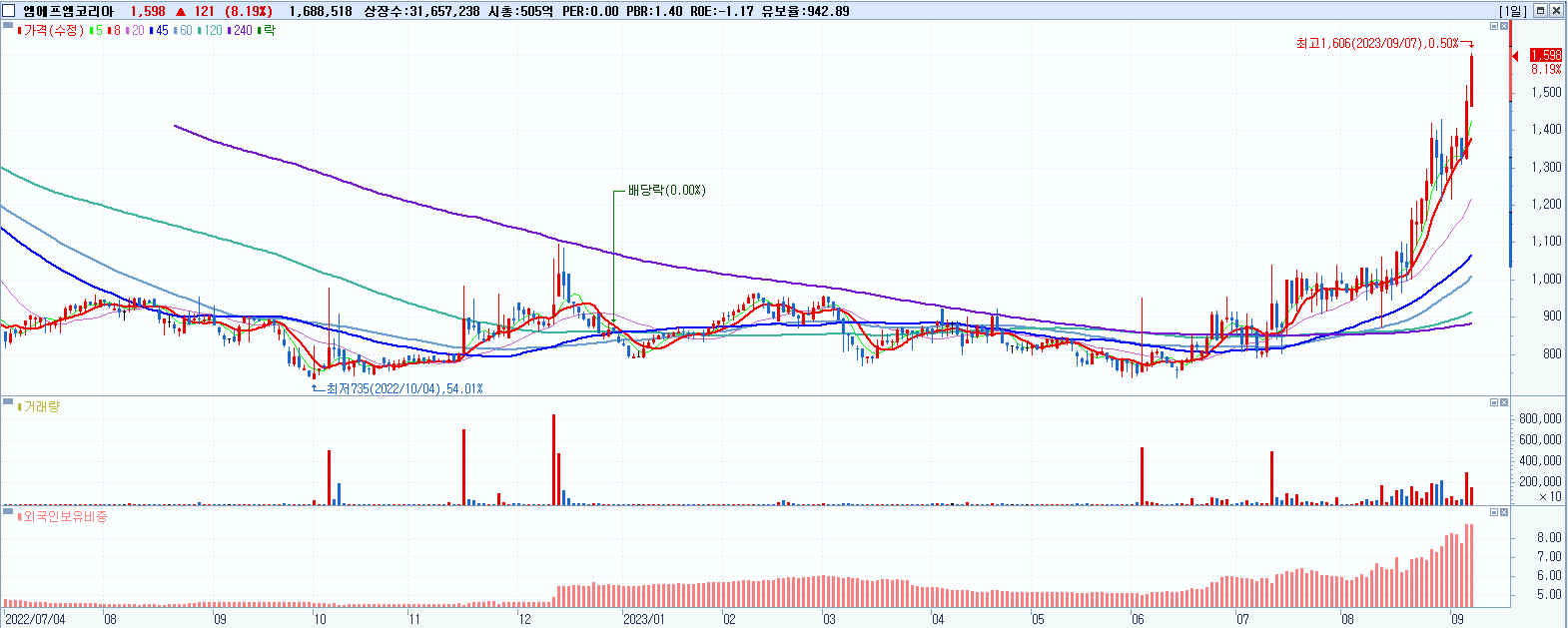 시총: 30,643억 거래량: 1,579,901 거래대금:3,889억