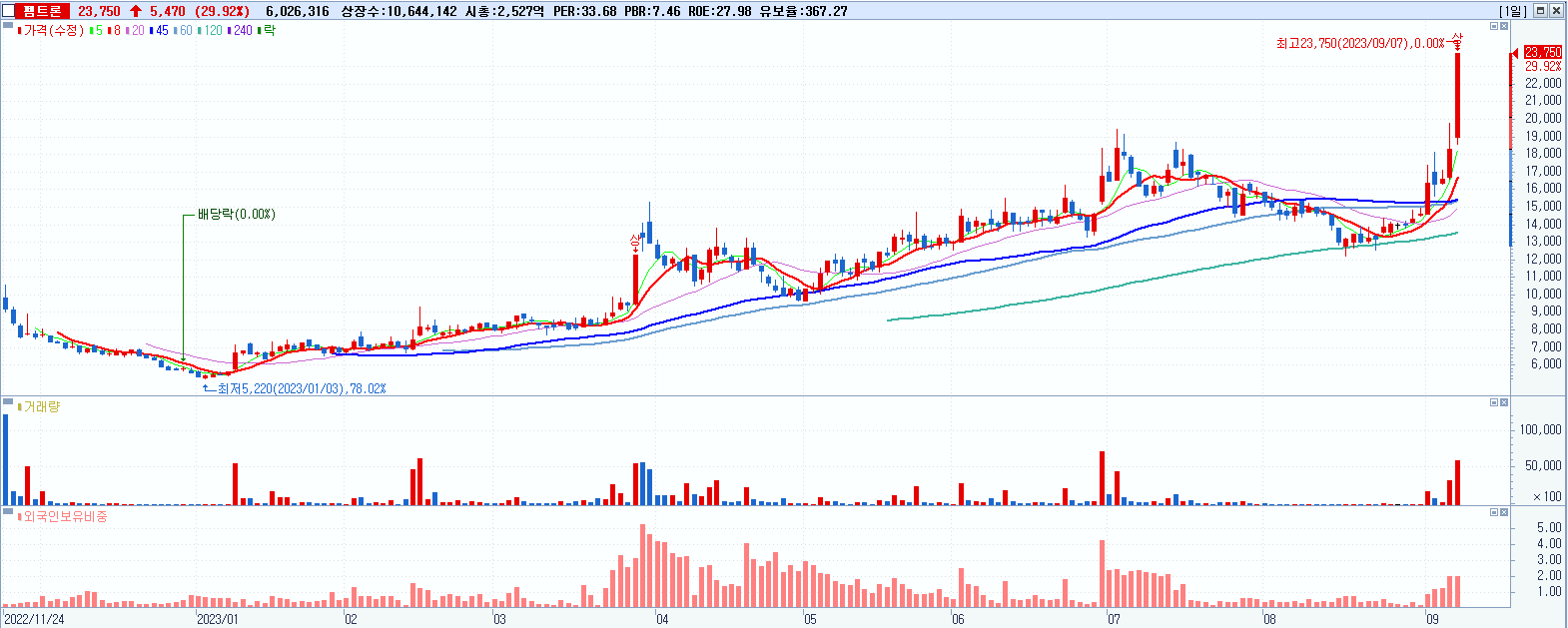 펨트론 23,750원 ▲ 29.92% (KOSDAQ, 168360)