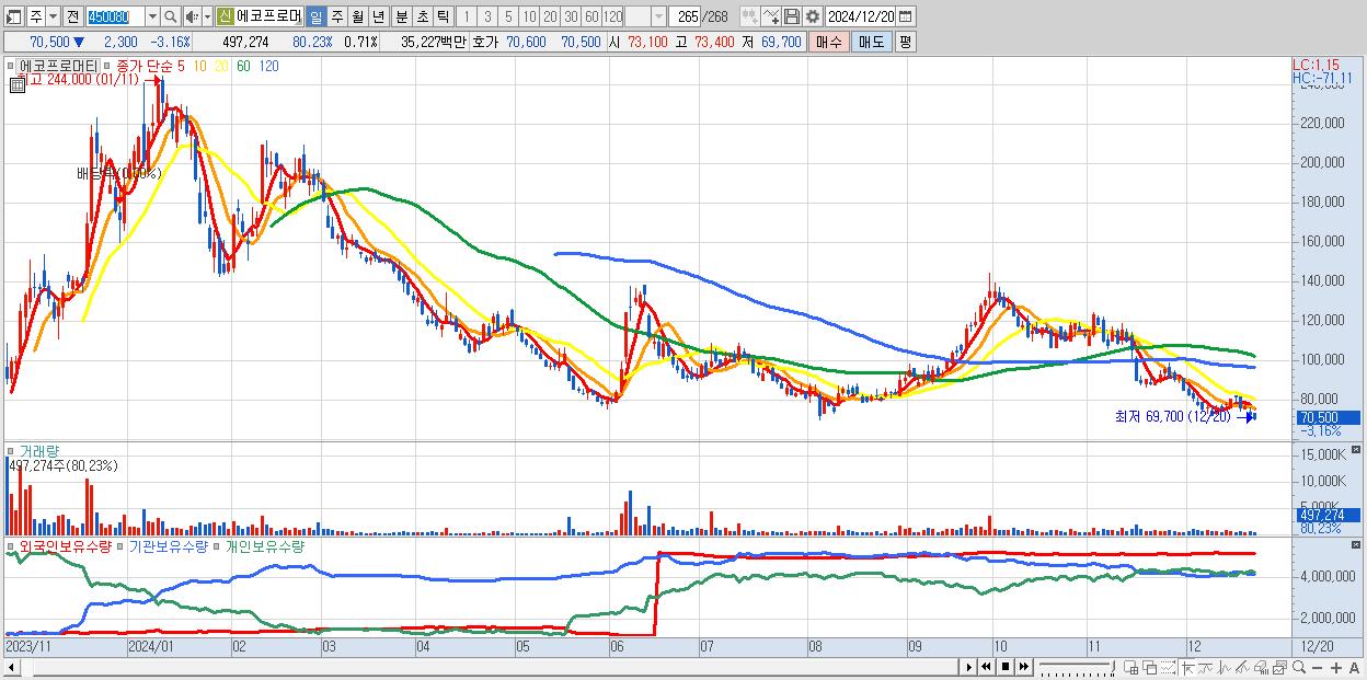 - 에코프로머티 (70,500원 ▼ -3.16% , 시총: 49,166억, 외국인 순매수 거래금:52억)