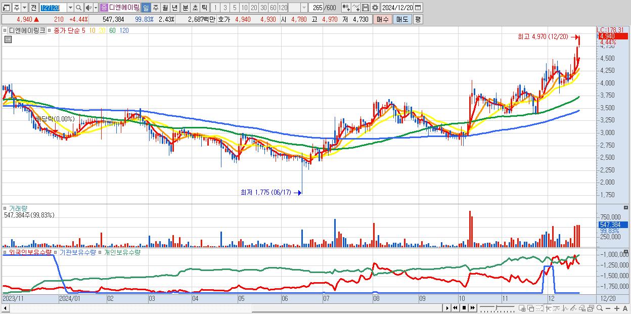 디엔에이링크 4,940원 ▲ 4.44% (KOSDAQ, 127120)