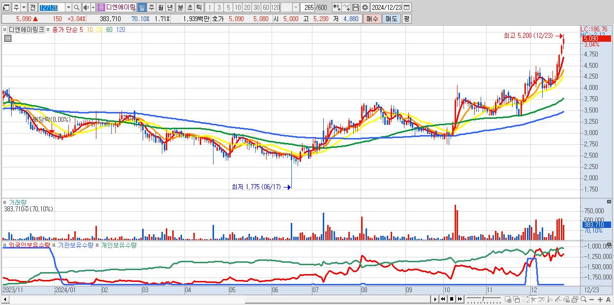 디엔에이링크 5,090원 ▲ 3.04% (KOSDAQ, 127120)