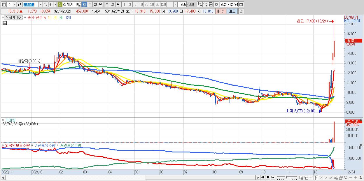 - 신세계 I&C (15,310원 ▲ 9.05% , 시총: 2,338억, 거래량: 32,742,621, 거래대금:5,046억)