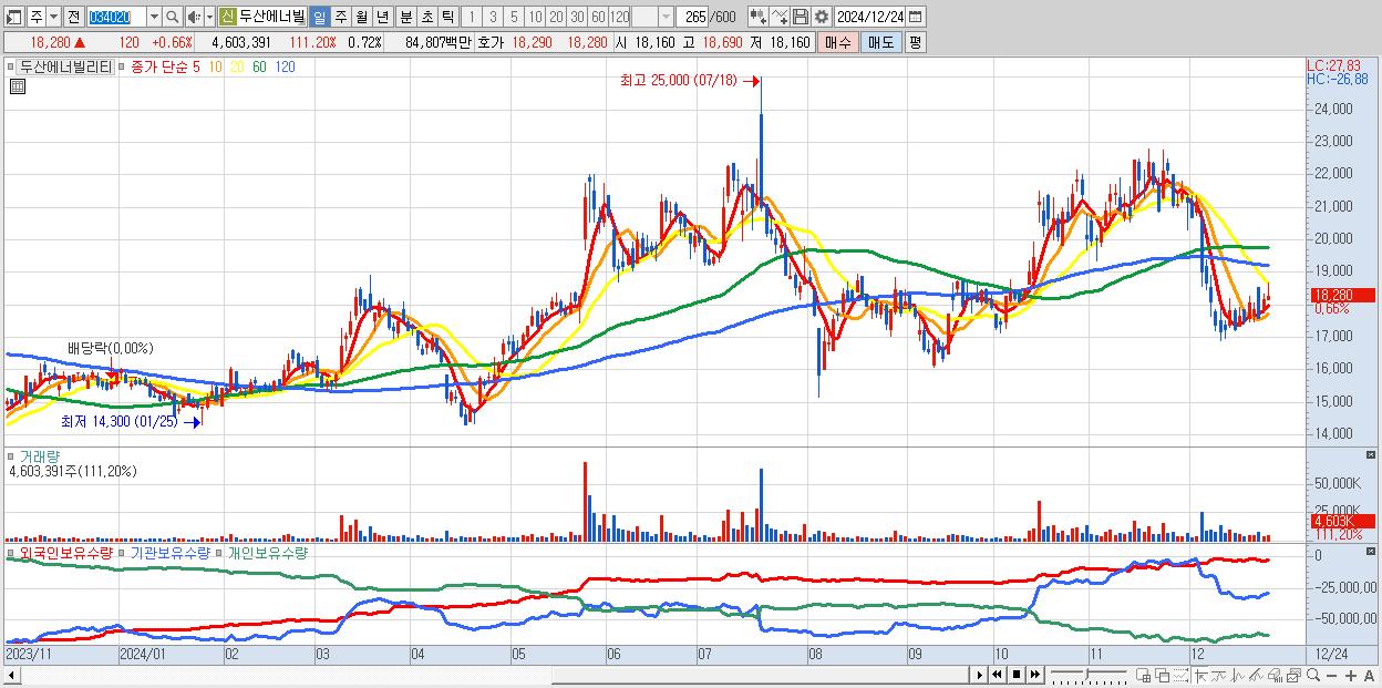 - 두산에너빌리티 (18,280원 ▲ 0.66% , 시총: 117,095억, 외국인 순매수 거래금:46억)