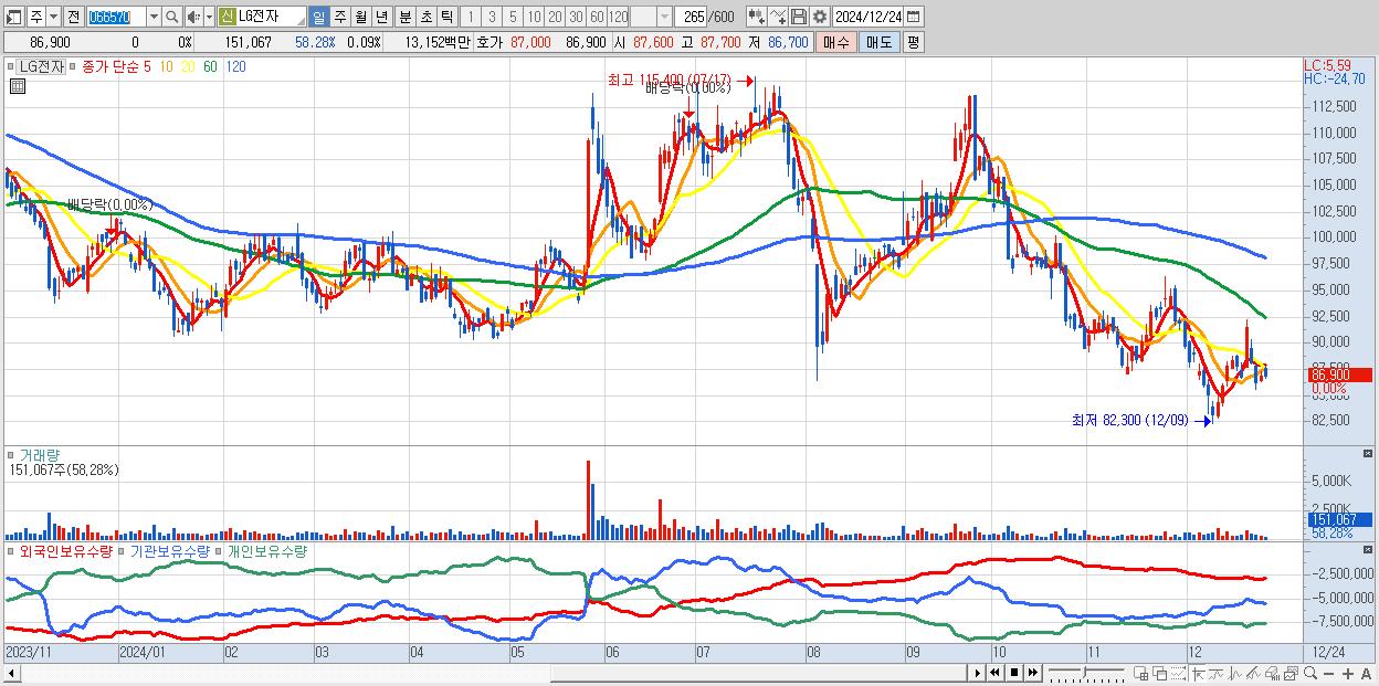 - LG전자 (86,900원 0% , 시총: 142,210억, 외국인 순매수 거래금:27억)