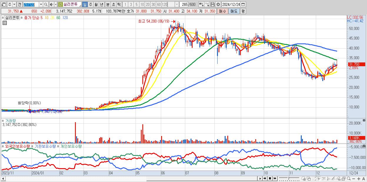 - 실리콘투 (31,750원 ▲ 2.09% , 시총: 19,327억, 거래량: 3,147,752, 거래대금:1,038억)