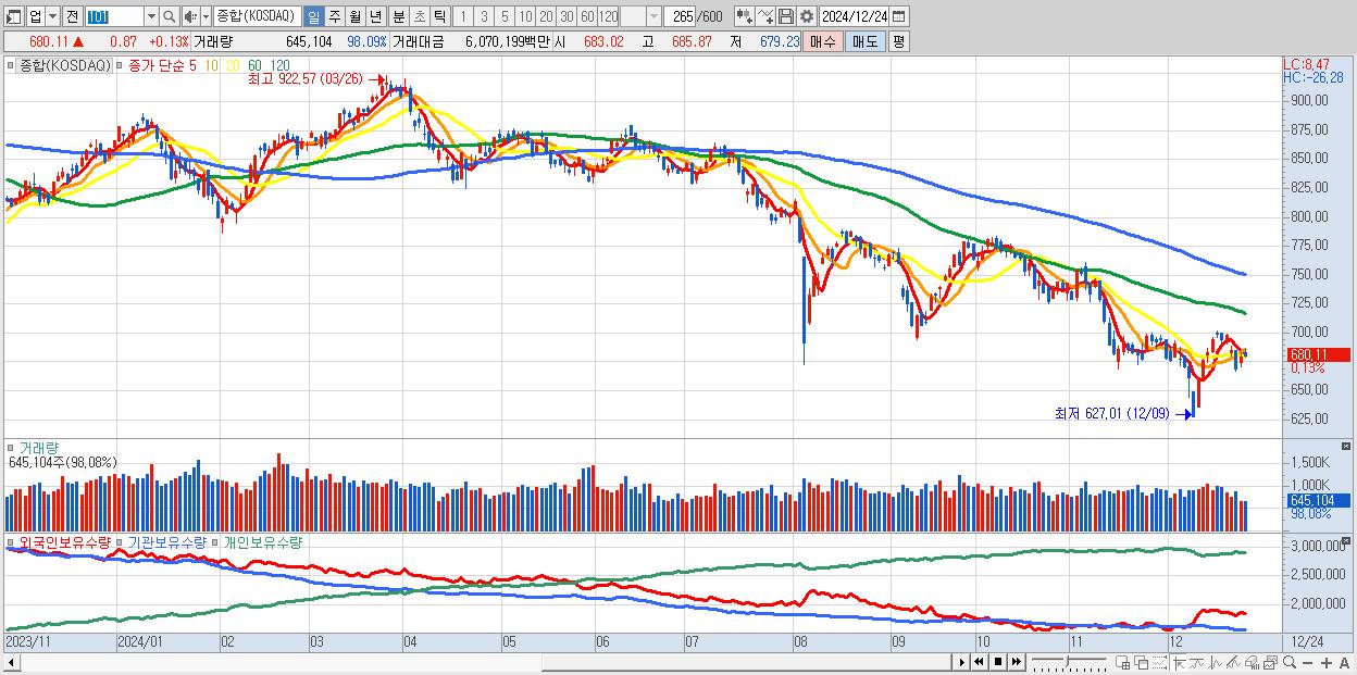| 12/24 | 680.11 | ▲0.13% | -739억 | -60억 | 973억 | -174억 |