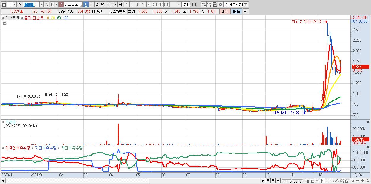 30.이스타코 1,633원 ▲ 8.15% (KOSPI, 015020)