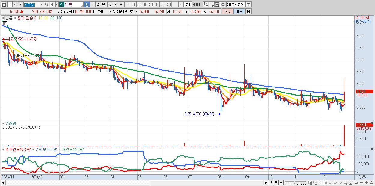 - 넵튠 (5,670원 ▲ 14.31% , 시총: 2,647억, 거래량: 7,368,743, 거래대금:428억)