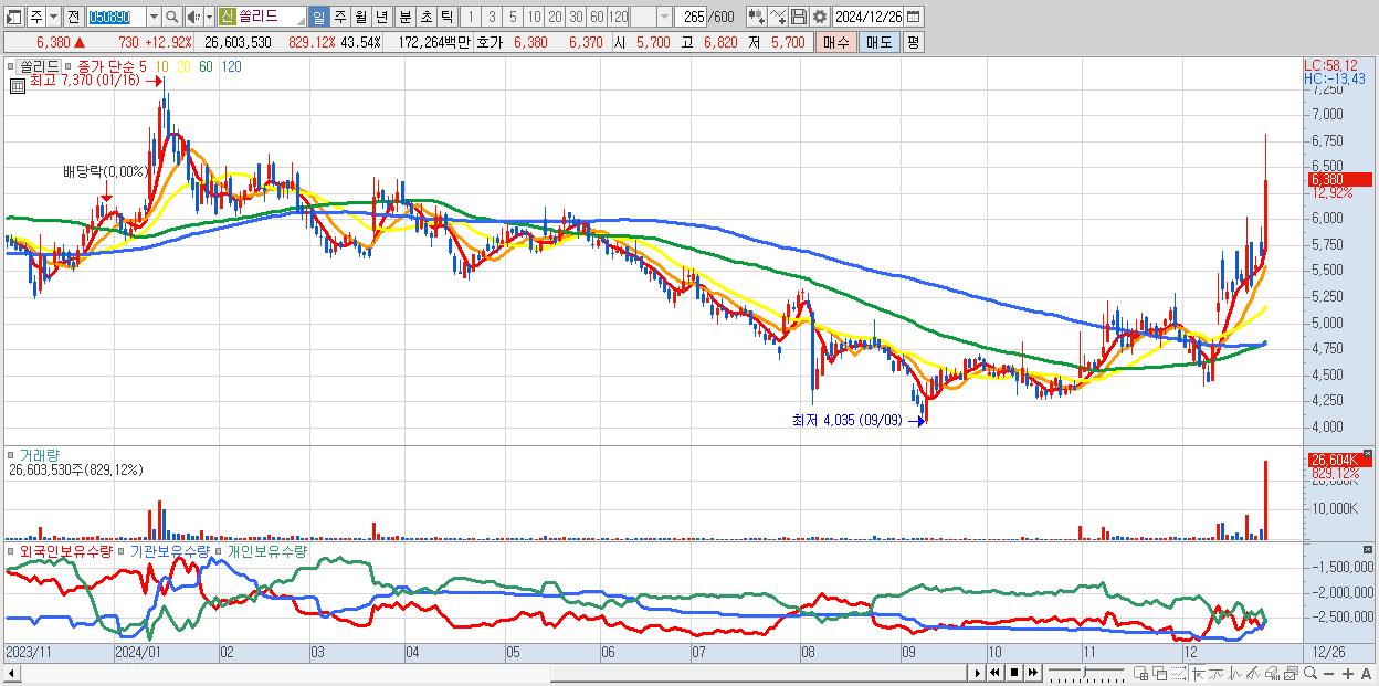 - 쏠리드 (6,380원 ▲ 12.92% , 시총: 3,898억, 거래량: 26,603,530, 거래대금:1,723억)