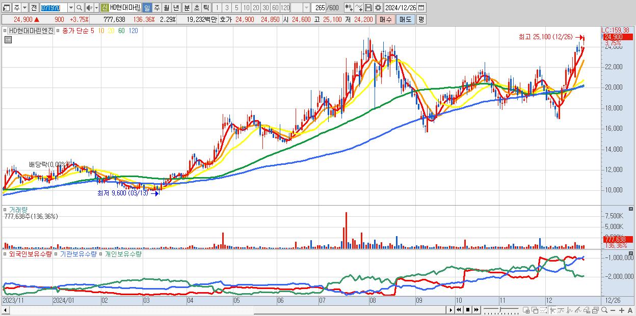 HD현대마린엔진 24,900원 ▲ 3.75% (KOSPI, 071970)