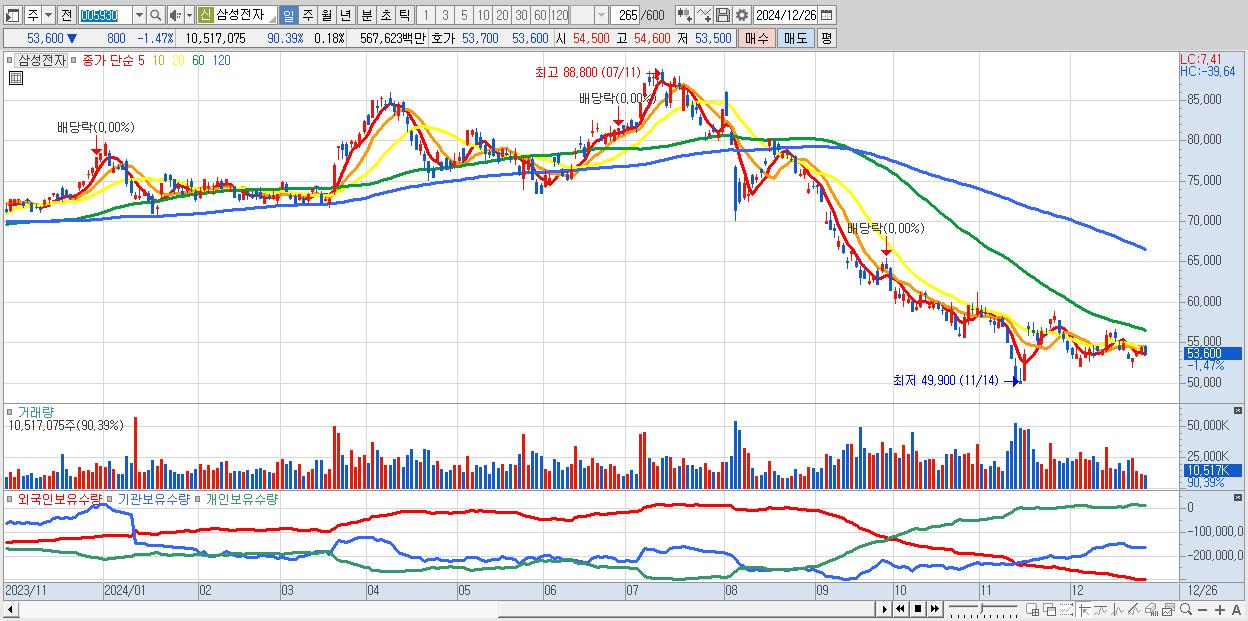 2.삼성전자 53,600원 ▼ -1.47% (KOSPI, 005930)