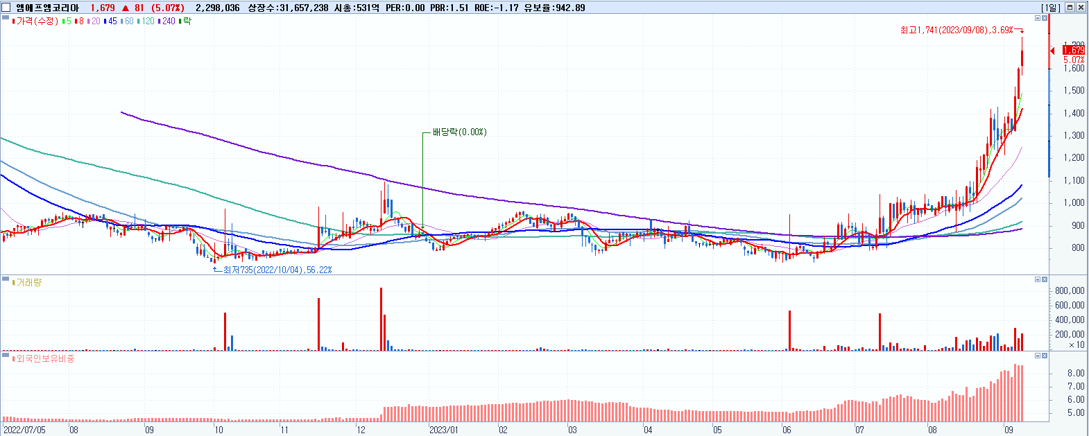 엠에프엠코리아 1,679원 ▲ 5.07% (KOSDAQ, 323230)