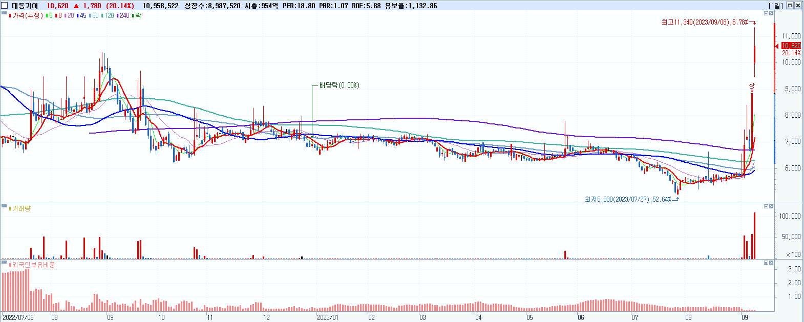 시총: 954억 거래량: 11,079,757 거래대금:1,152억