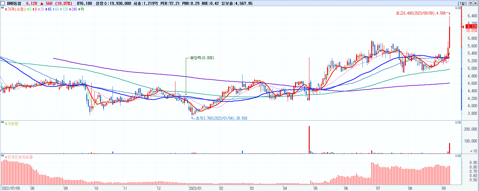 DRB동일 6,120원 ▲ 10.07% (KOSPI, 004840)
