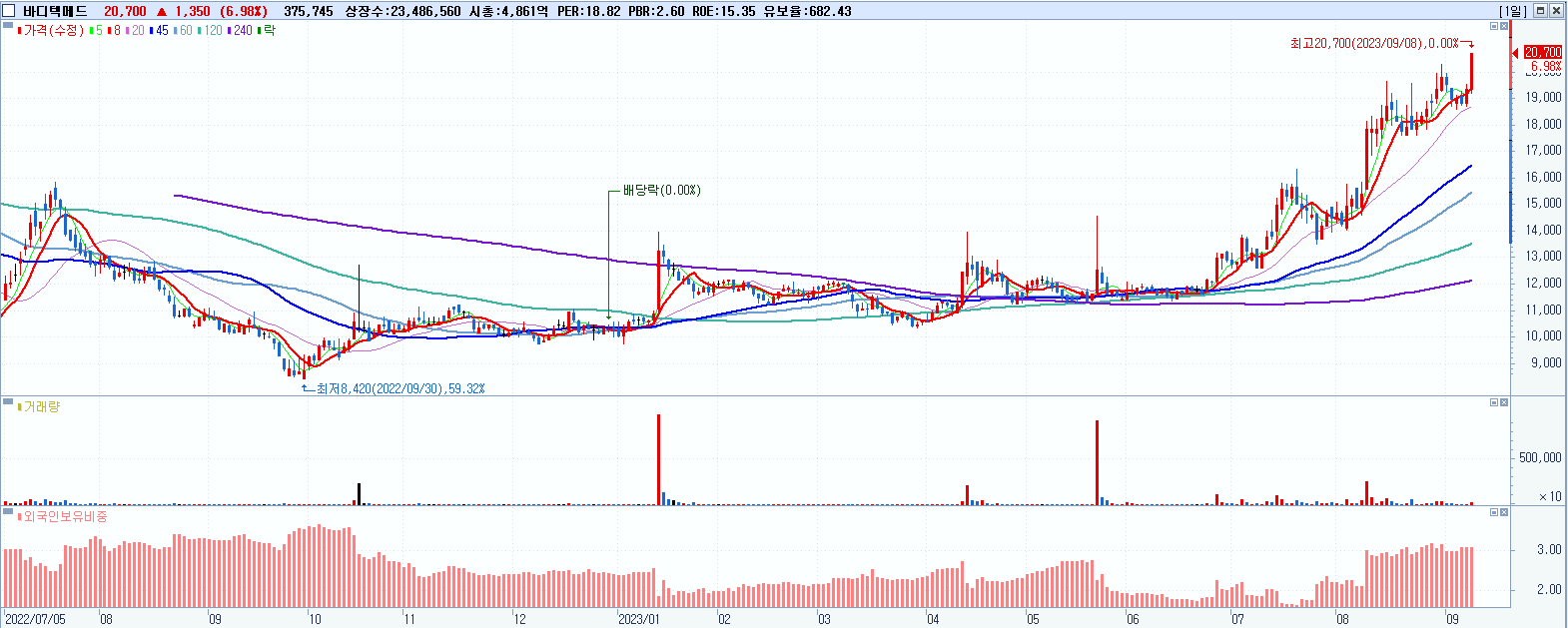 - 바디텍메드 (20,700원 ▲ 6.98% , 시총: 4,862억, 거래량: 377,434, 거래대금:77억, KOSDAQ)