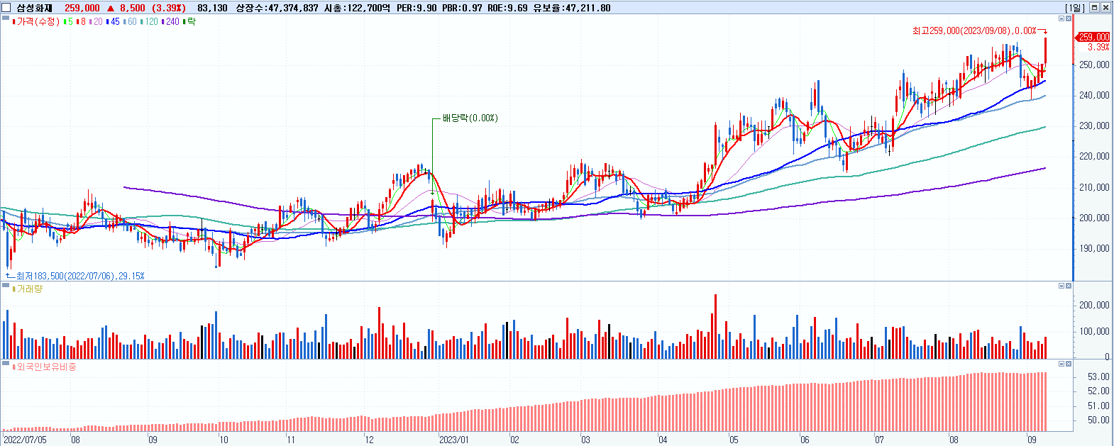 삼성화재 259,000원 ▲ 3.39% (KOSPI, 000810)