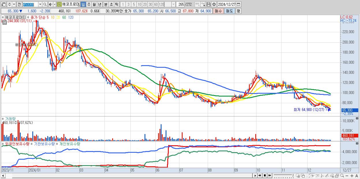 - 에코프로머티 (65,300원 ▼ -2.39% , 시총: 45,539억, 외국인 순매수 거래금:73억)