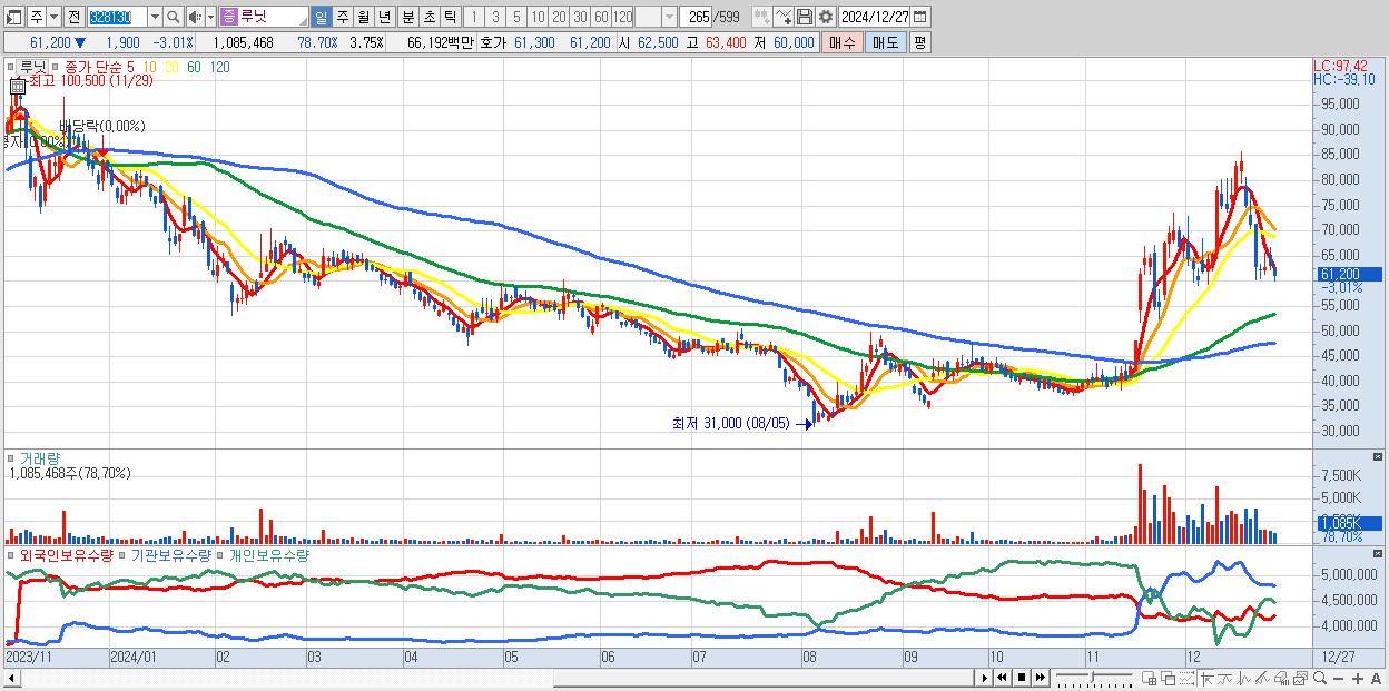 - 루닛 (61,200원 ▼ -3.01% , 시총: 17,713억, 외국인 순매수 거래금:66억)