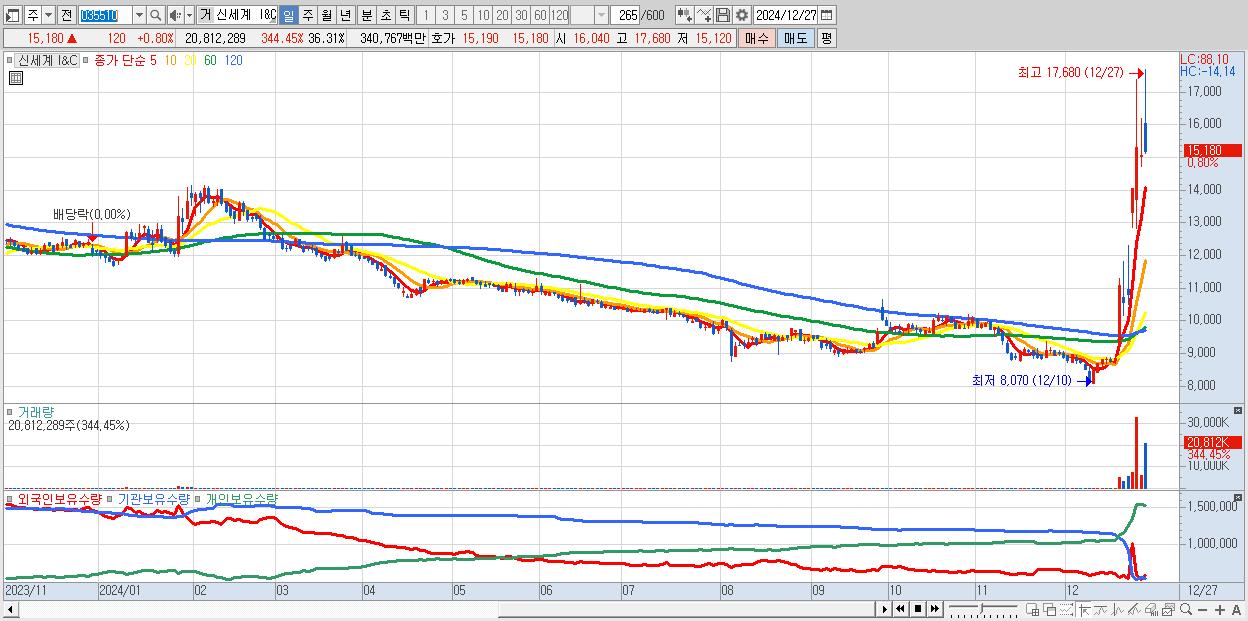 - 신세계 I&C (15,180원 ▲ 0.8% , 시총: 2,318억, 거래량: 20,812,289, 거래대금:3,408억)