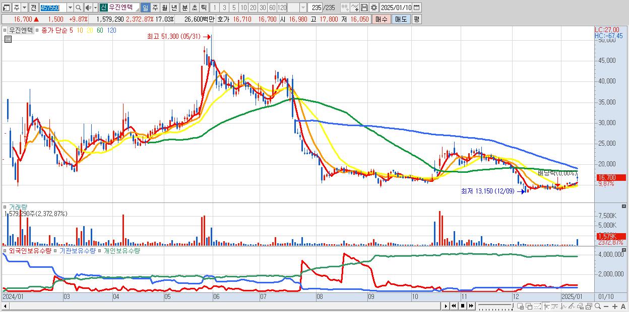 30.우진엔텍 16,700원 ▲ 9.87% (KOSDAQ, 457550)