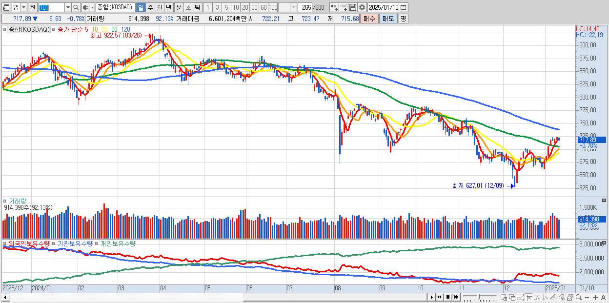 01/07 | 718.29 | ▲0.05% | 1,018억 | -57억 | -703억 | -258억 |