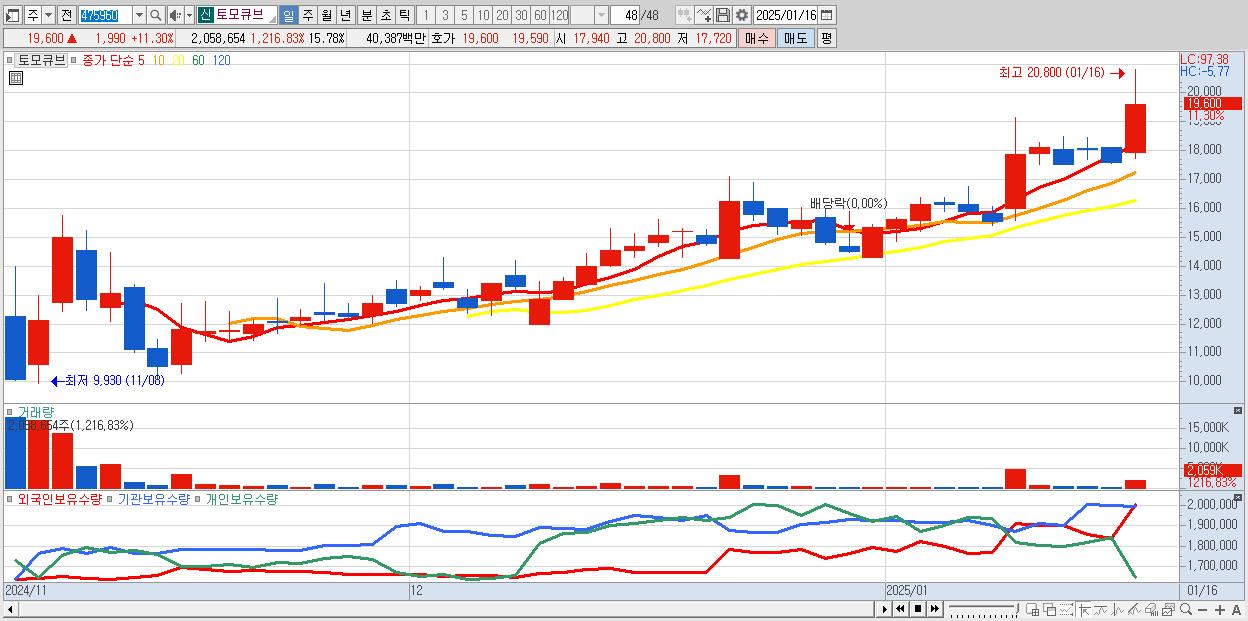 29.토모큐브 19,600원 ▲ 11.3% (KOSDAQ, 475960)