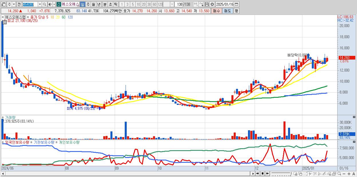 - 에스오에스랩 (14,260원 ▲ 7.87% , 시총: 2,521억, 거래량: 7,378,925, 거래대금:1,043억)