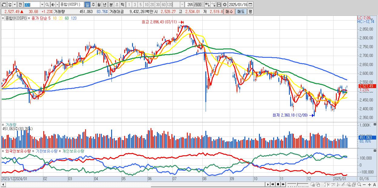 01/16 | 2,527.49 | ▲1.23% | -5,757억 | 6,244억 | 190억 | -677억 |
