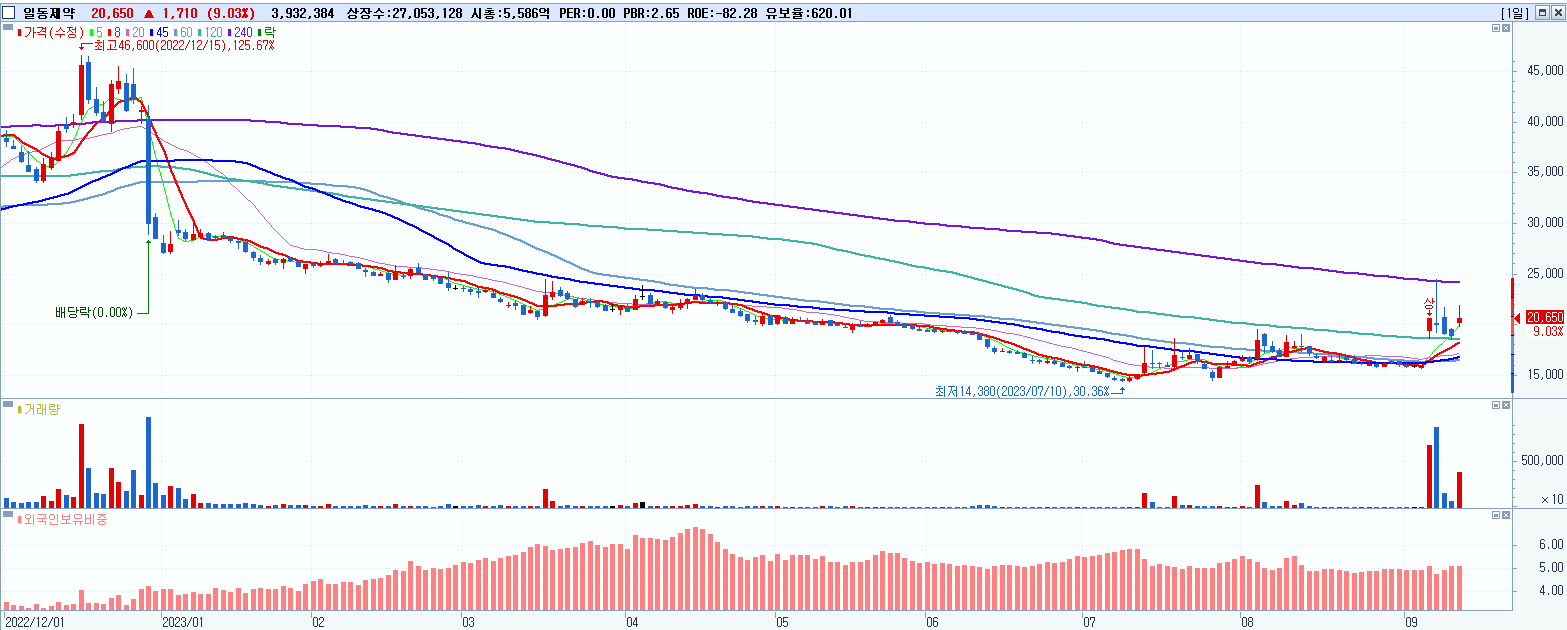 - 일동제약 (20,650원 ▲ 9.03% , 시총: 5,586억, 거래량: 3,940,686, 거래대금:824억)